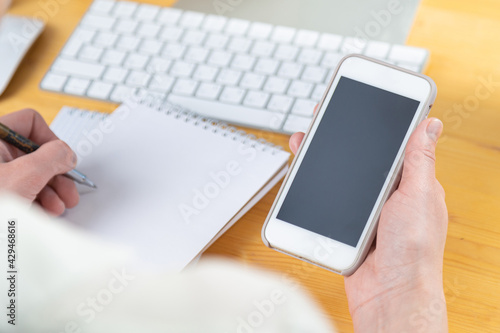 hands of women who use laptop keyboard and mobile phone. concept of email delivery and use of online technology