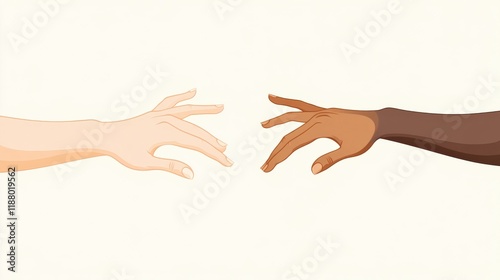 Hands Reaching Out with Different Skin Tones Symbolizing Unity, Diversity, and Human Connection in a Minimalist Artistic Illustration Ideal for Inspirational Themes