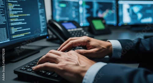 Hands typing code to reinforce cybersecurity protocols within supply chain systems.
