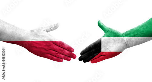 Handshake between Kuwait and Poland flags painted on hands, isolated transparent image.