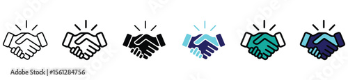 Handshake Icon Set with Line, Solid, and Color Styles for Business and Partnership Themes