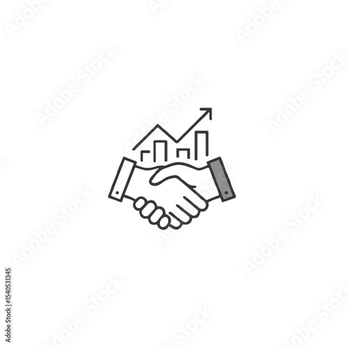 Handshake icon with growth chart, partnership concept, modern design, minimalistic style, black and white