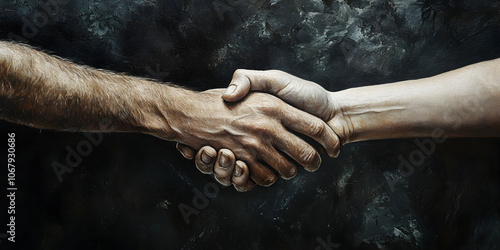 Handshake of Trust: A close-up shot of two hands shaking, symbolizing partnership, agreement, and unity on a textured backdrop.