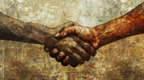 Handshakes in grunge style symbolizing cooperation and agreements for labor day background