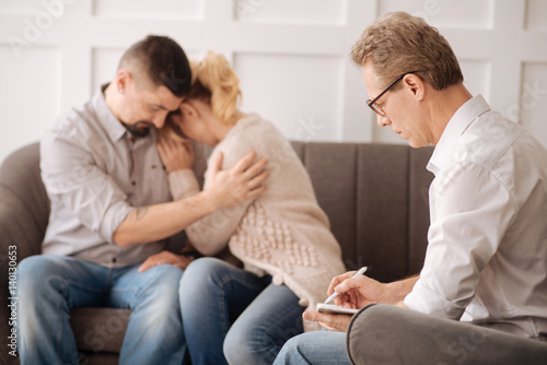 Handsome intelligent therapist taking notes