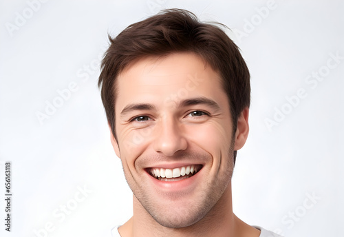 Handsome young man smiling cheerful at the camera with a smile on face showing teeth