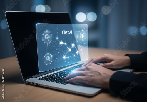 Hands-on Chat AI Interaction on Laptop in Modern Workspace at Night