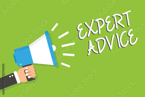 Handwriting text Expert Advice. Concept meaning Sage Good Word Professional opinion Extensive skill Ace Man holding megaphone loudspeaker green background message speaking loud