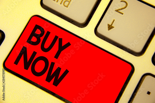Handwriting text writing Buy Now. Concept meaning asking someone to purchase your product Provide good Discount Keyboard red key Intention create computer computing reflection document