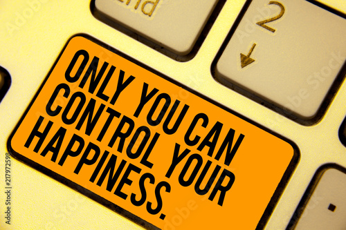 Handwriting text writing Only You Can Control Your Happiness.. Concept meaning Personal Self-motivation inspiration Keyboard orange key Intention create computer computing reflection document.