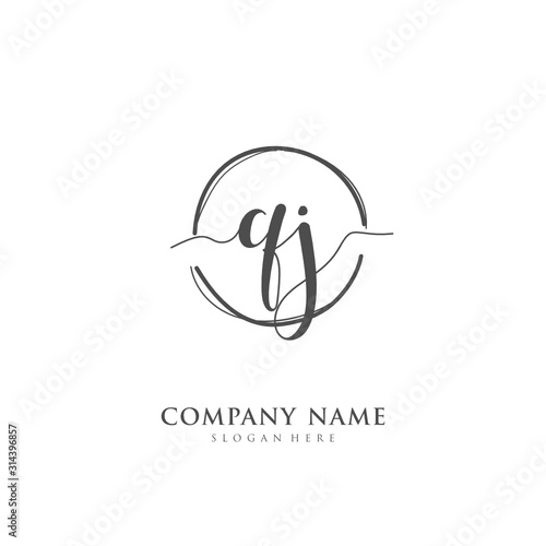 Handwritten initial letter Q J QJ for identity and logo. Vector logo template with handwriting and signature style.