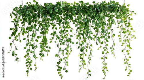 Hanging artificial greenery, cascading leaves, white background, home decor