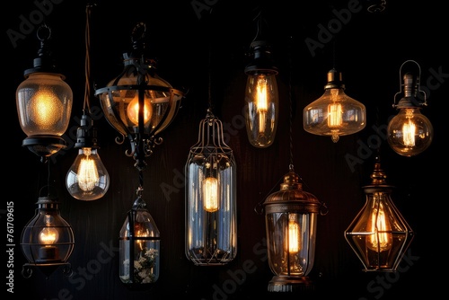 Hanging lamp collection for the beautiful home interior on black background . Generative AI