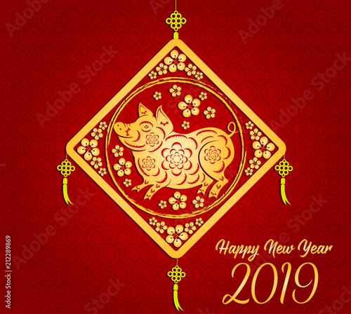 Happy Chinese New Year 2019 year of the pig. Lunar new year