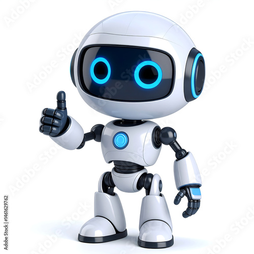 Happy 3D Chatbot Robot Character – Friendly AI Assistant . Artificial intelligence, trendy technology, support service, funny ,futuristic icon