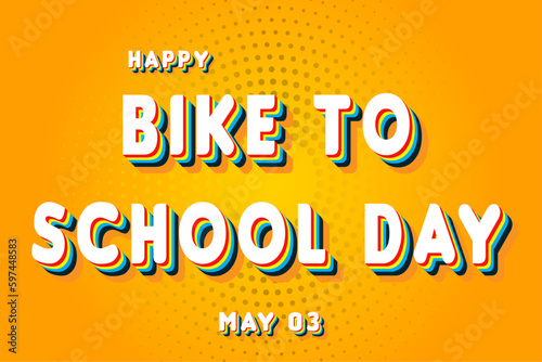 Happy Bike to School Day, May 03. Calendar of May Retro Text Effect, Vector design