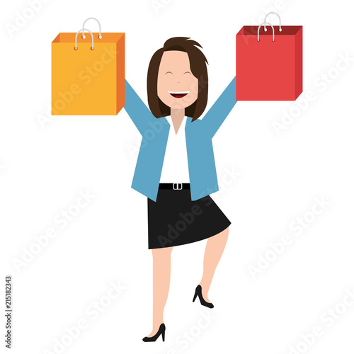 happy businesswoman with shopping bags