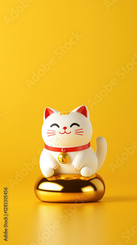 Happy cat figurine sitting on gold ingot, symbolizing luck