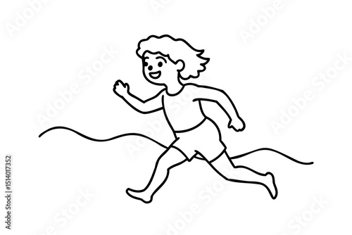 Happy child running joyfully along wavy line playful illustration