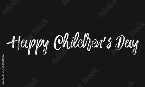 Happy Children’s Day Chalk white text lettering retro typography and Calligraphy phrase isolated on the Black background