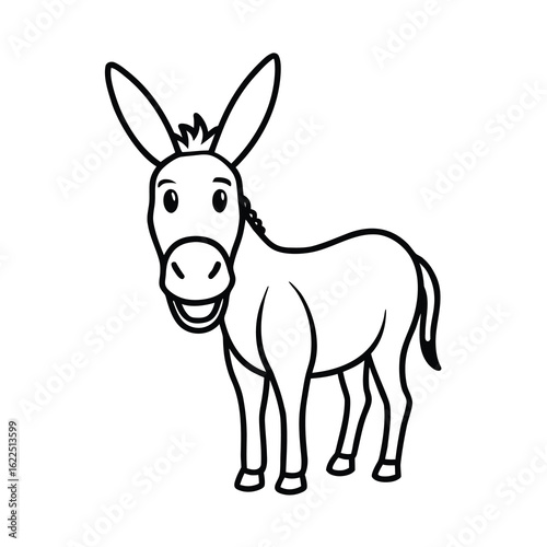 Happy donkey with long ears and smiling cartoon face in bold colorful style