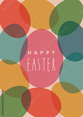 happy easter greeting card with lettering and colorful easter eggs, vector illustration