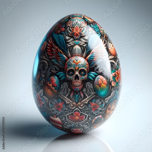 Happy Easter, illustration Easter Eggs covered in a variety of hyperrealistic shiny 3D tattoo images