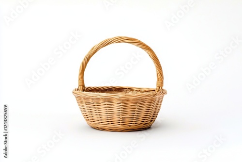 Happy Easter tradition. Woven basket with a handle, isolated on a white background.