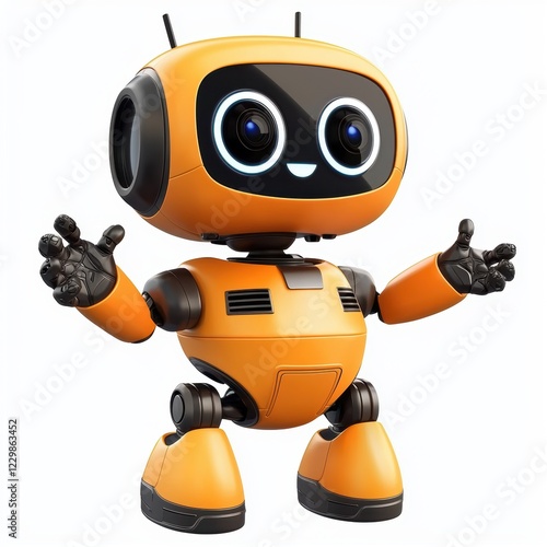 happy educational robot with built-in projectors and playful expressions, isolated on a clean white background