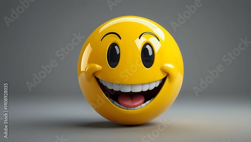Happy Emoji Smiling with Open Mouth on Gray Background