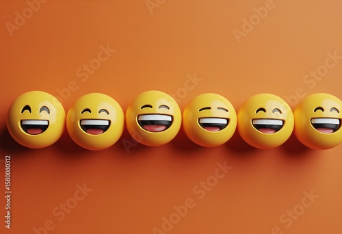 Happy emojis, orange circles display varying degrees of joy on orange backdrop
