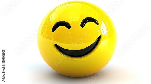 Happy emoticon, 3D rendering, white background, positive emotion, website design