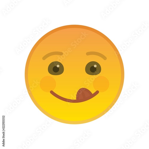 Happy emoticon with tongue out isolated on white background. Playful yellow emoji symbol. Social communication and internet chatting vector element. Cheerful smiley face with facial expression