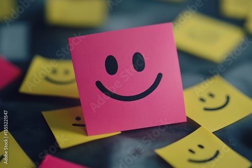 Happy face among various negative emotions on sticky notes: a concept representing a positive attitude