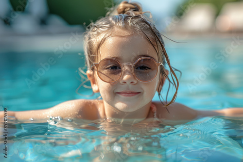 Happy Girl Relaxing in Pool