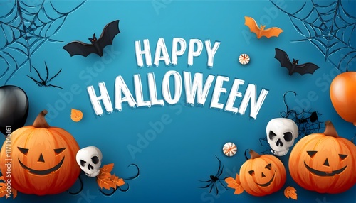 Happy Halloween Pumpkins Bats Spiders Skulls Candy