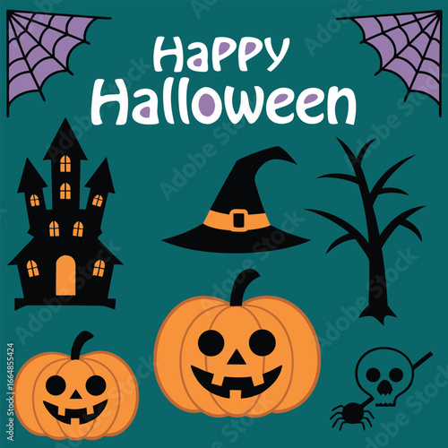 Happy halloween spooky elements isolated.