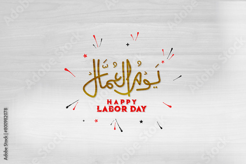 Happy labor day arabic hand written letters with wood background