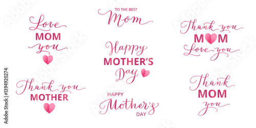 Happy mother's day typography, calligraphy. Love you Mom text. For mothers day greeting cards, banners, social media posts, invitations, photo overlays. Transparent background in vector file.
