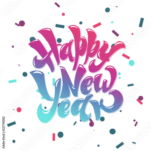 Happy New 2019 Year. Holiday Vector lettering Illustration With Lettering Composition and Burst Vintage Festive Label