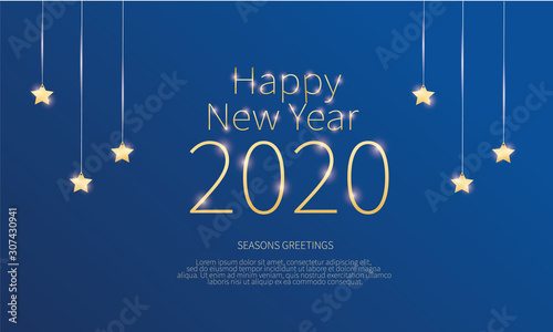 Happy new year 2020 Celebration design template , Elegant gold text with light. Minimalistic template Design for calendar, greeting cards or print