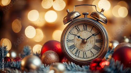Happy New Year 2025 Vintage Clock Striking Midnight A close-up of a vintage clock striking midnight