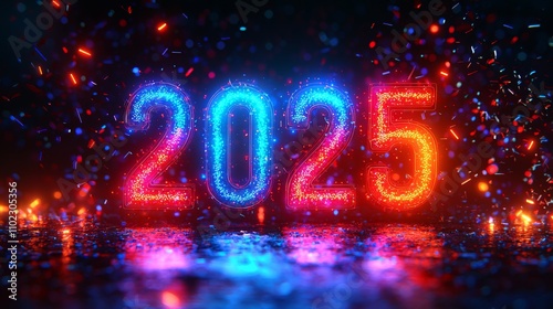 Happy New Year 2025 Bright and Sparkling Numbers Showcased Against Vibrant Festive Scene