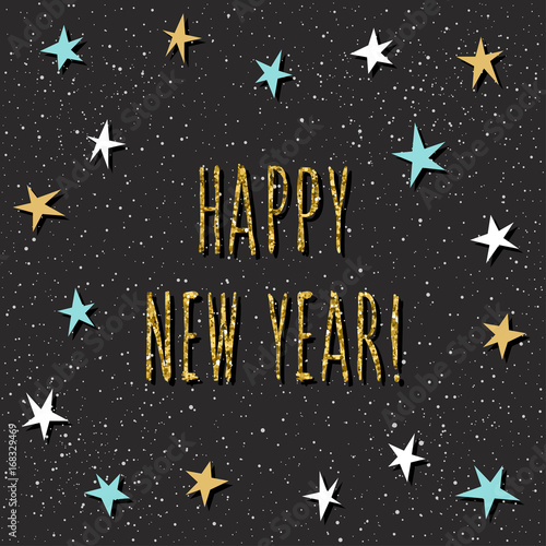 Happy new year card. Handwritten quote and handmade star pattern