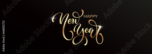 Happy New Year hand lettering calligraphy. Vector holiday illustration element. Typographic element