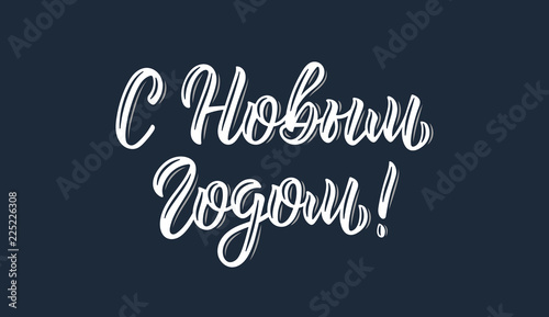 Happy New Year hand written inscription in Russian, fashion graphics, art print for posters and greeting cards design. Calligraphic isolated quote in white ink. Vector