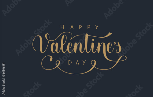 Happy Valentines Day Golden Handwritten Phrase. Vector Hand Lettering for Greeting Card.