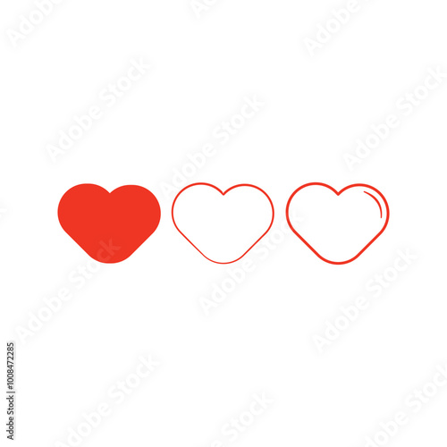 Happy Valentines Day. Red hearts on a white background. Set of red hearts on a white background. Red hearts on white background. Love icon set. Flat design.
