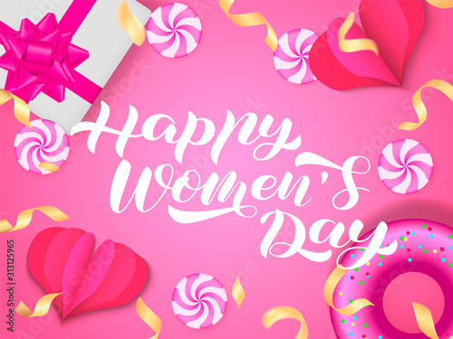 Happy Women's Day brush lettering. International Women's Day March 8. Vector stock illustration for card or poster
