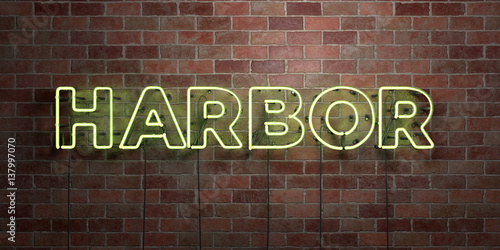 HARBOR - fluorescent Neon tube Sign on brickwork - Front view - 3D rendered royalty free stock picture. Can be used for online banner ads and direct mailers..